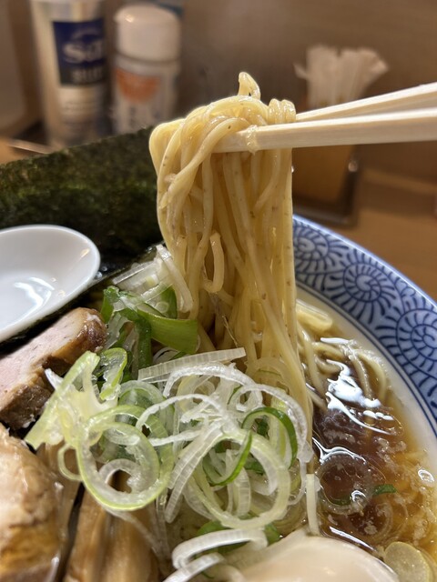 平日月曜日の11時15分に24番目の受付。初心に戻り、中華そばを基本に注文。毎回、スープまで完飲するため、大盛にするか悩むが、いつも大盛にしてしまう。トッピング特製のセットはリニューアルでお休みのため、煮玉子と本枯節を追加。12時半頃に呼び出しがあり、入店して順番を待つ。ロットごとに券売機でも販売している出汁パック、煮干しで出汁をとってスープに合わせるため、香りが高い。やはり基本の中華そばは一番美味い。途中で本枯節を投入して、すぐ完食完飲。13時5分に退店となるが、オンライン予約制にして頂けると池上線沿線の自分ですら、ありがたいのだが…