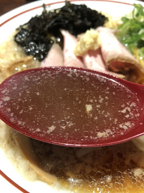 さてこちらは生姜醤油専門の店。何度か来ていますが、塩生姜つけ麺は初めて。スープから生姜の香りが立ち上る。さっぱりとして爽やかなスープが美味い!梅雨時には最適です。そしてストレートな中太麺麺がツルツル、モチモチで美味い!麺をスープに付けてズルっと啜ると、ああラーメンは美味いなあと実感しました!岩海苔、玉ねぎも良いアクセントでした。