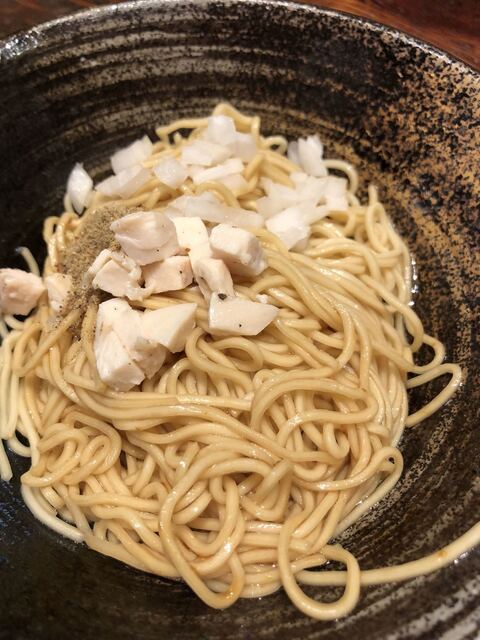 着丼してすぐに山椒の香りが立ち上る。一口飲んで、中華そばの透明なスープにたっぷりの山椒が効いているのが分かります。ピリッとくるけど、出汁の味とマリアージュして爽やかな味わい、これは美味しい!麺は細麺ストレート、ツルツルの感触が心地よい。麺とスープを一緒に啜ると、ツルツル麺と山椒のスープがよく合って、スルスルと喉を通りすぎる。中華そばとは違った格別な美味しさを満喫しました!ワンタンは肉がギッシリ入ってボリューミー。そのままでも美味しいけど、酢を掛けて食べるのがグッドでした!チャーシューも適度に柔らかく、申し分ない。