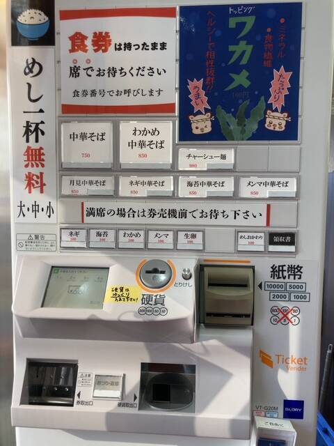 券売機の罠にまんまとかかって、わかめラーメンを注文した私(*´艸`)