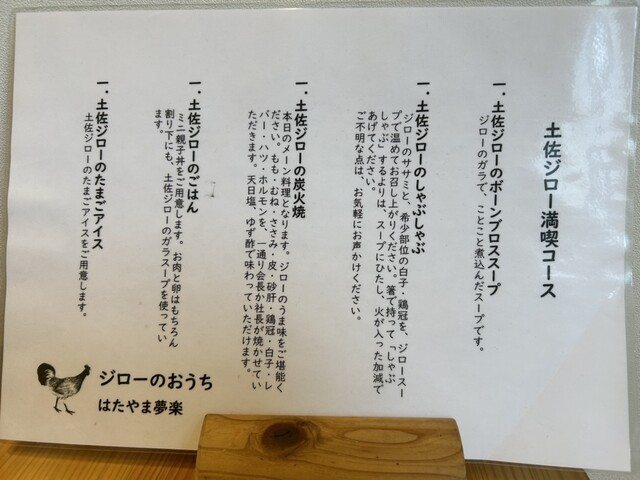 幻の地鶏、土佐ジローのコース料理が食べられるお店です。
