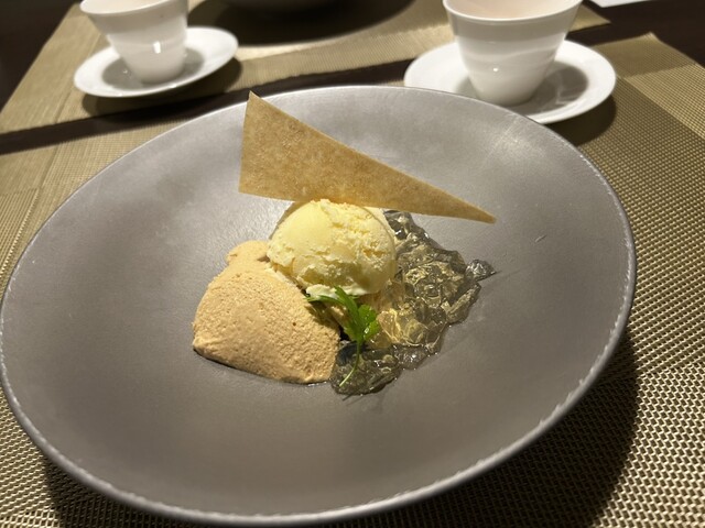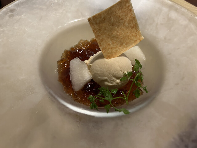 桂花紅茶ゼリーと梨と黒糖アイス
