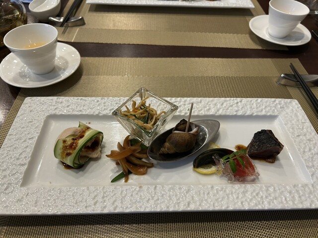 前菜盛り合わせ ( ピータン・蛍烏賊・杏子酒ゼリー・バイ貝・砂ズリ )