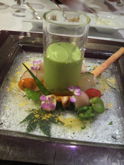 あのグラスの筒にはグリーンピースの冷たいスープ