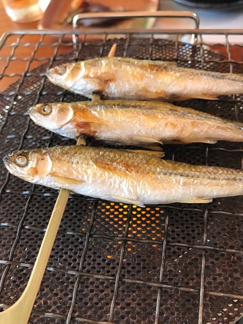 メインのスッポン鍋以外も大きなビワマスの姿造りに塩焼き、鮒寿司と高級な食材が次々と出され食べきれない!