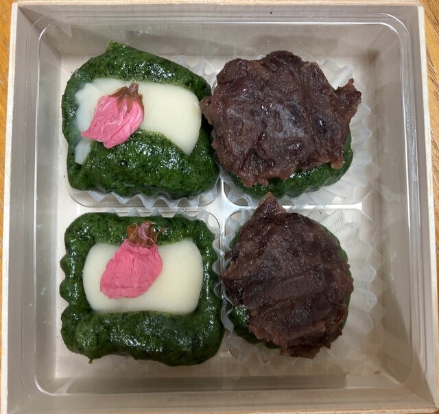 桜の時期に販売される、”桜草餅”と定番の”草餅”とのセットを購入しました。 各2個入りで1,250円です!