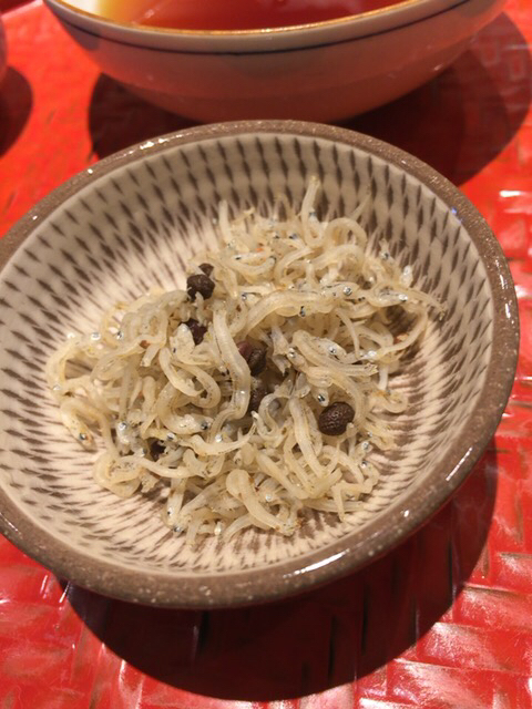 今夜の魚はキス・グジ・アナゴの三種、グジのウロコがパリパリして香ばしさが加わりとても美味しい。