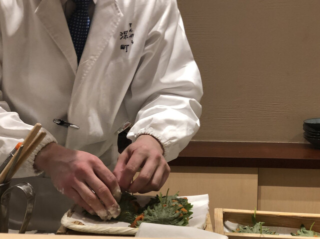 その後クチコや河豚の白子が天つゆ・塩・レモンなどの指定を受けながら次々と美味しくいただく。