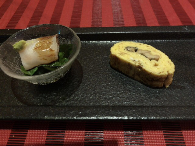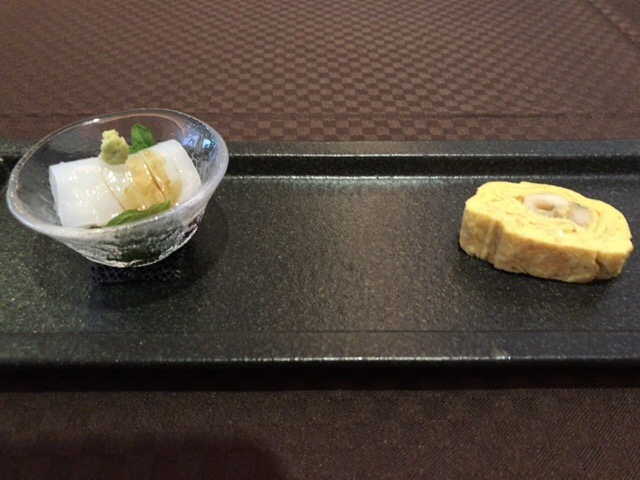 もう一種の前菜穴子の玉子巻き、ほんのり暖かい