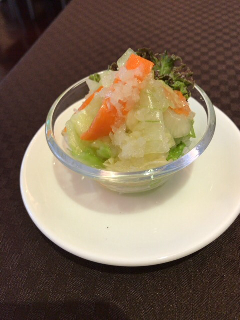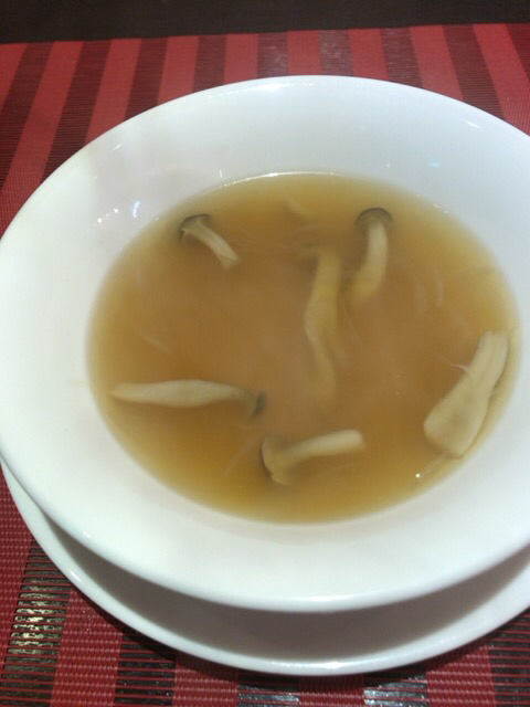 今日のスープはオニオンコンソメ茸入り、ポタージュと迷ったが今日はスッキリコンソメの雰囲気。