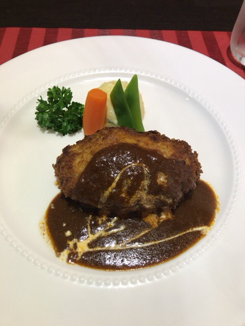 この時のメインはデミグラスハンバーグとズワイガニのクリームコロッケ。
