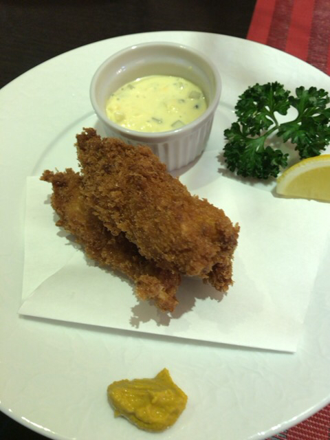 自家製だと思われるタルタルソースとレモン、そして少しの和がらし(多分)と一緒。