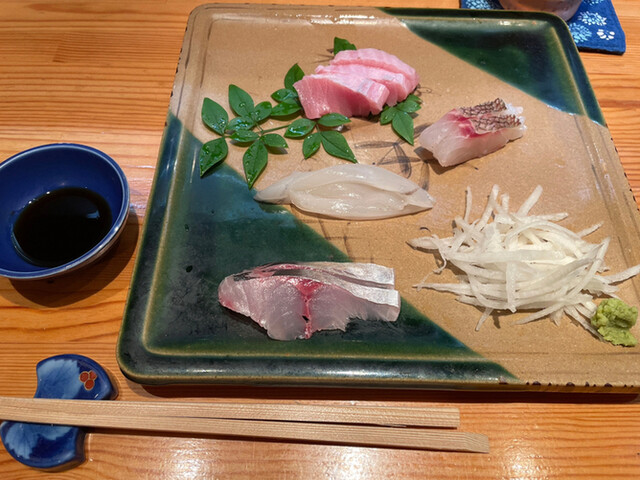 蓮根の炒り煮 刺身(鯛の湯引き アラ(クエ) 寒鰤)