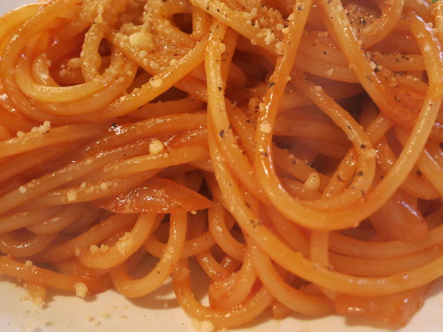 麺が茹でおきなら完璧だった、なつかしのナポリタンの味だよ~!