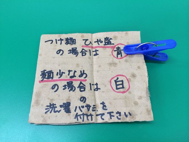 麺は少なめでいいので白い選択ばさみを食券に付けてカウンターに提出。