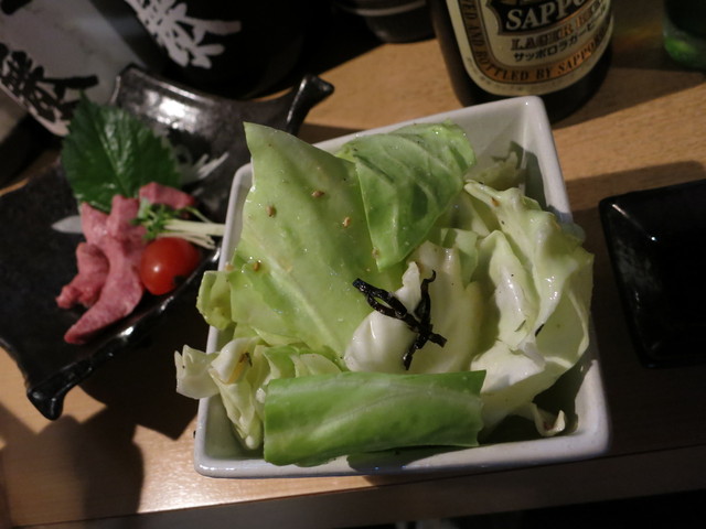 にんにくかな?旨味がとっても強くて確かにハマる、やみつき塩キャベツ!350円