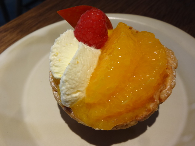 構成は、半円球パイにオレンジ果肉を包み込んだパティシエールを入れ、オレ