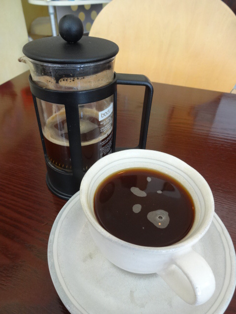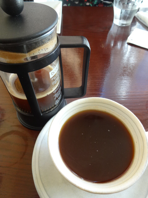 フレンチプレスで提供され、通常カップで約2杯飲める量なので、激安価格です。