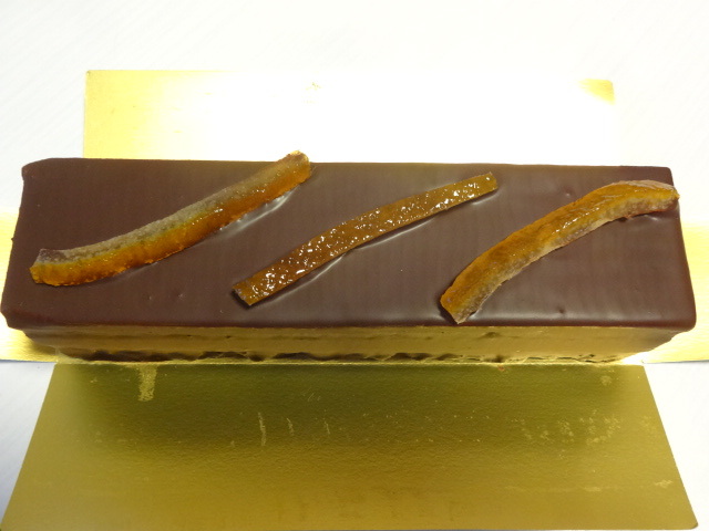 構成は、下からチョコでコートしたビスキュイの上にクリームをムースで包んだ品を