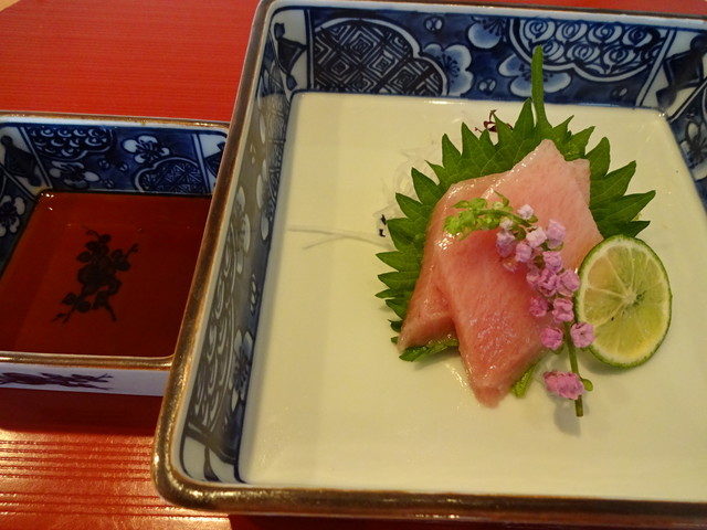 構成は、前菜+椀盛り+お造り+蒸し物+強肴+焼物+御食事+デザートです。