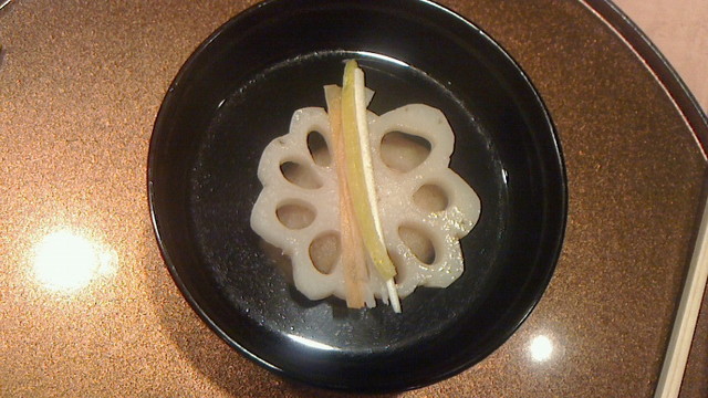 レンコン餅の上にレンコンを配した品