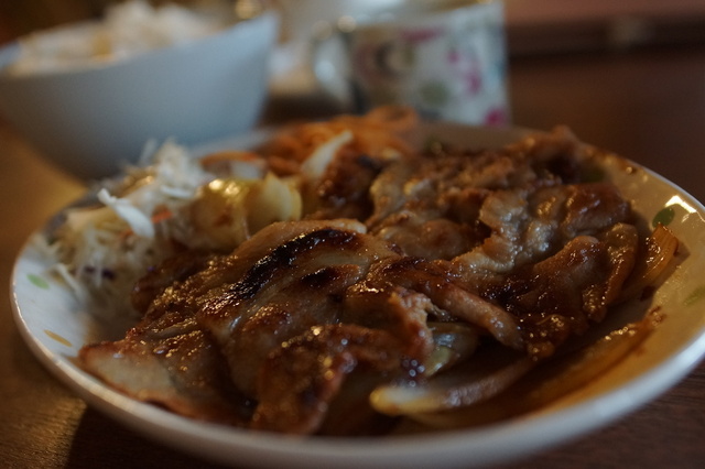 7、メニゥに載ってないものばかり作る中から生姜焼きです、粋がいいマスターとテキサスの話で満載です