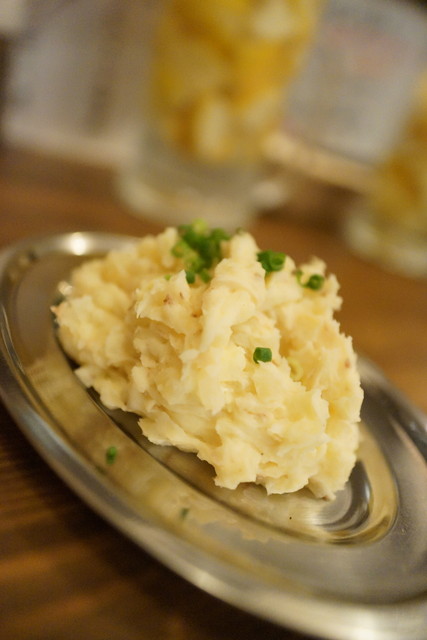 「たくあんポテサラ」ペーストされたポテトにカリカリ角切りたくあん入り