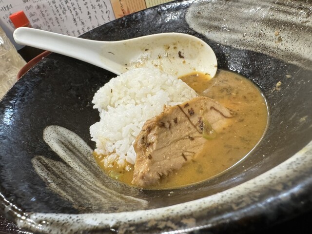 いつもの「白湯醤油 + 麺大盛(ランチサーヴィス) + 一口カレー + 全トッピング」