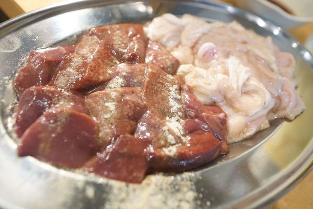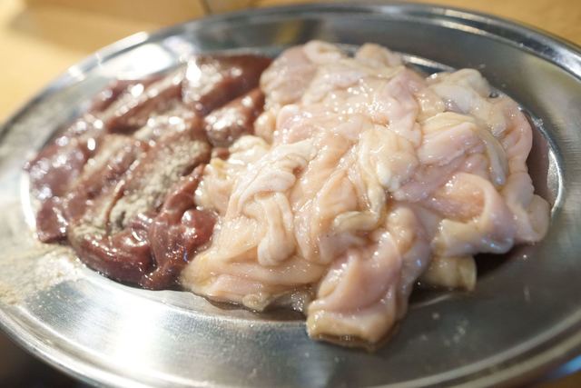 内臓だから赤身が濃いかなと思ったが意外と脂身もあり
