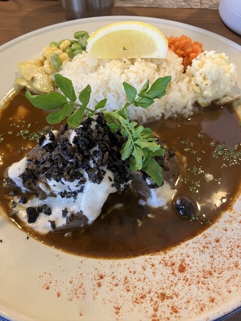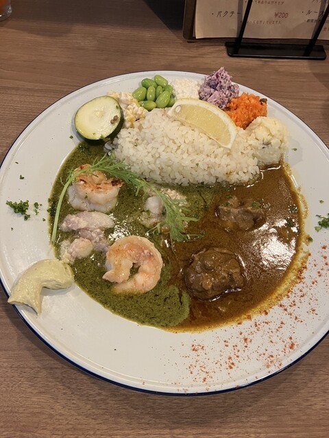 小麦粉を使った国民食的カレーライスではなく、ナンと一緒に戴くいわゆるインドカレーでもないく、盛り付けや副菜と共にワンプレートフレンチをカレーというドレスコード縛った感じですね。