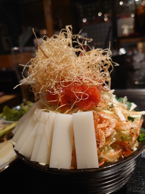 あんずのサワーにあんず棒が入っていて嬉しい(=^・^=)もんじゃは切りイカも入っていて味付けもしてあるので、初めてもんじゃを作る人でも簡単に出来る親切さ。明太もちチーズもんじゃ バター焼き美味しかったです。