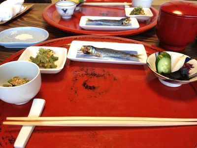 天然鮎は一匹はそのまま、もう一匹は山葵のお酢で。