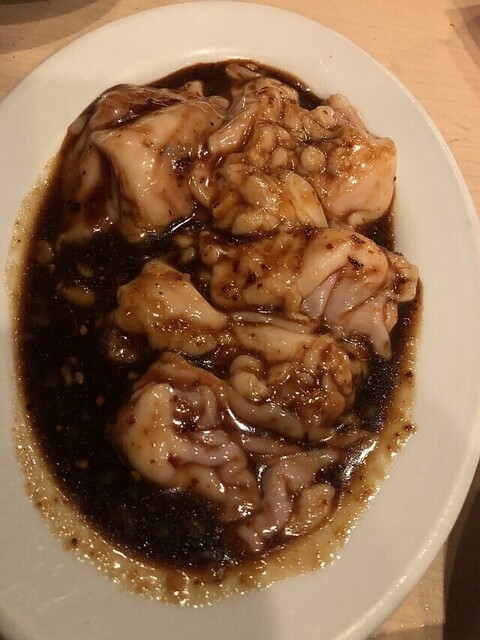 塩味、醤油味と、ゆうじさんのホルモン盛り合せはバリエーション豊富ですが。この辛い味付けは絶品。