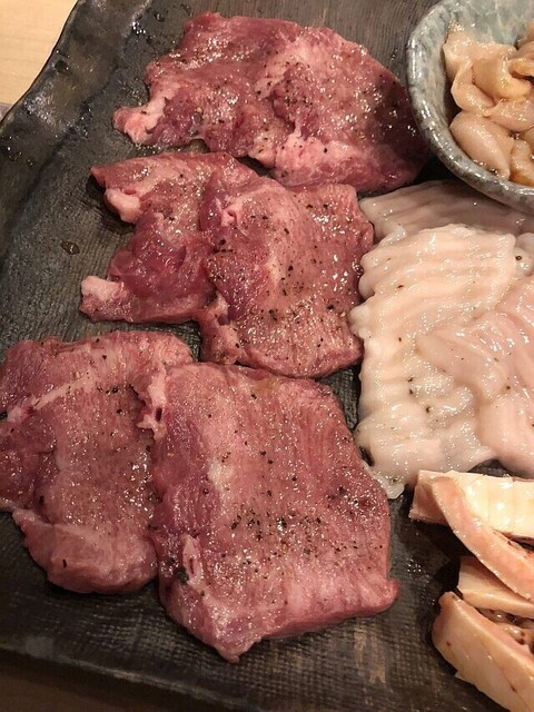 薄切りタン、ハラミ、シマチョウなど、いわゆるオーソドックスなラインナップで。
