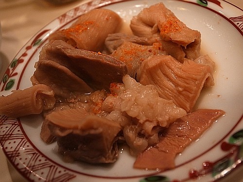 続いてチレ刺し。脾臓の刺身。とろっとした食感がたまらんばい。玉子を溶いていただきます。レバ刺しがメニューから外れてしまった今、レバー的な楽しみはコレしかないね。