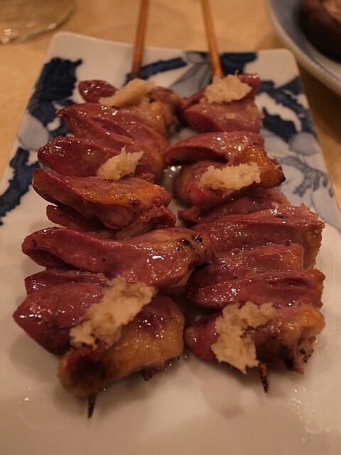 ここから怒涛の串焼きが次々と。ぼんじり、フォアグラ、つくね、皮、ハツ、軟骨、レバ…。