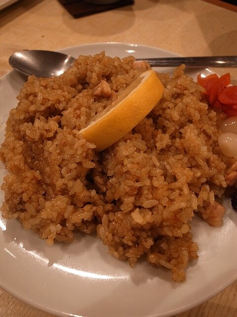 そして、焼鳥の下に隠れている里葉亭名物のカレーピラフ。