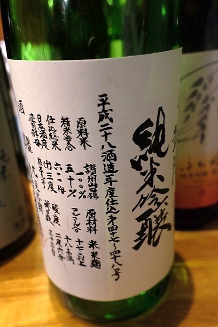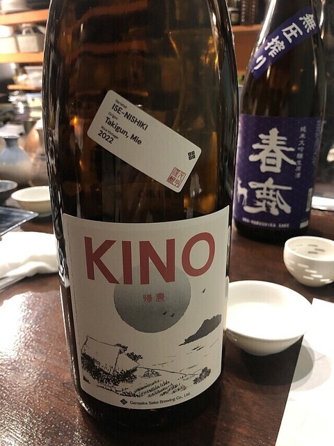 この日飲んだ日本酒は、記憶の限りでは、三諸杉(みむろすぎ)の濁り酒→篠峯(しのみね)→鬼ごのみ(みむろ杉の蔵元)→菊鷹(きくたか)→菊姫→義侠(ぎきょう)ともがら→秋鹿へのへのもへじ→梅乃宿→花巴(はなともえ)→花巴 樽丸(たるまる)→四季咲。