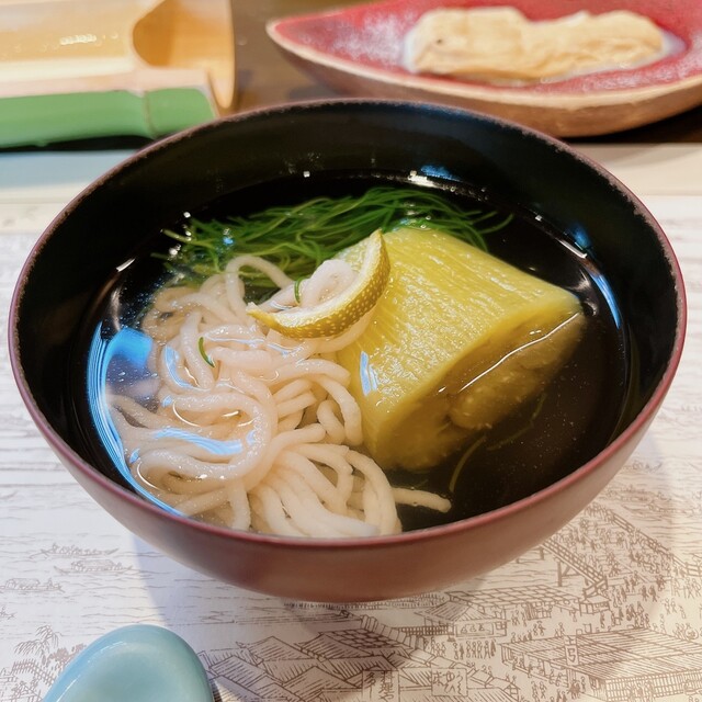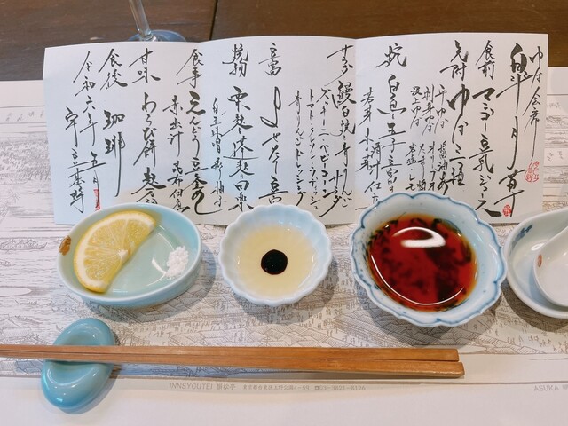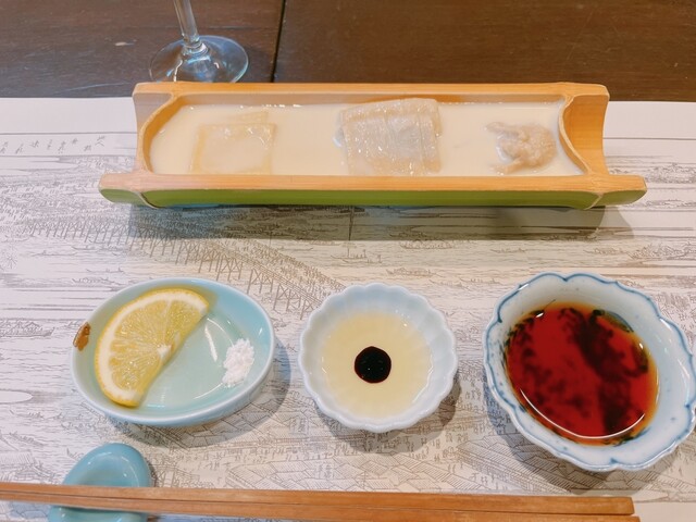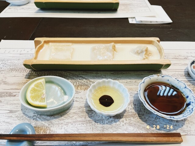 3種湯葉のセットに椀物は鴨ツミレとカブ。