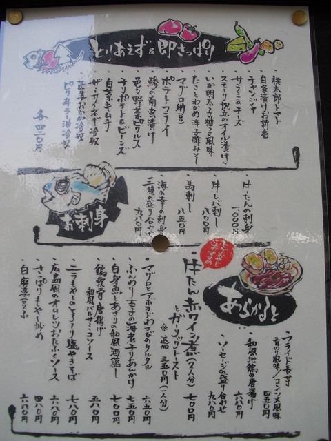 とりあえず1品物 刺身 あらかると メニュー