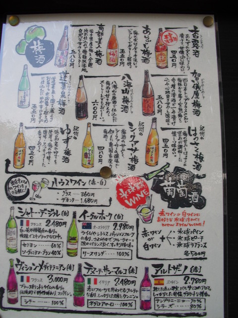 豊富な梅酒 ワイン メニュー