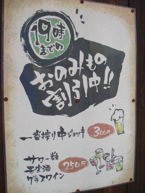 19時まで300円生ビールと お通し