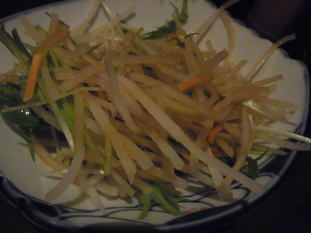 直後にお通し?として大根と水菜(多分)のサラダを出してくれました。