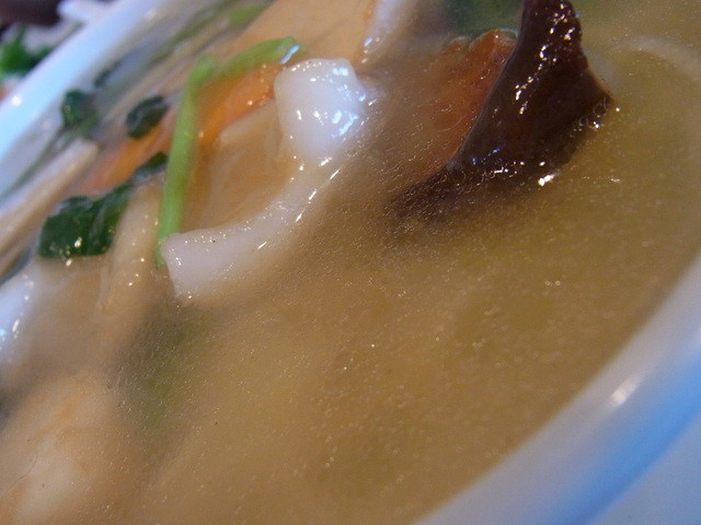 ご覧のとおりしっかり海鮮が入ってまして、その出汁が心地よい塩スープに