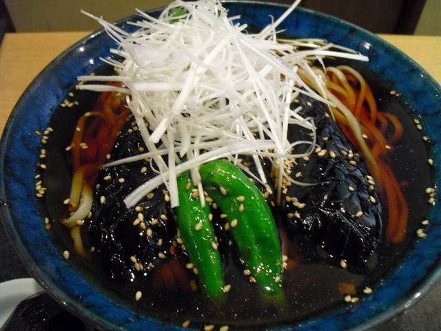 上に乗るのは、夏野菜の代表(私が好きなだけ!?)、茄子・白髪ネギ・しし唐。