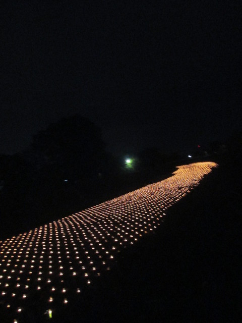 一番の見どころは「天井川」の10000の光ですね。後、河原の保育園や幼稚園児の力作など。