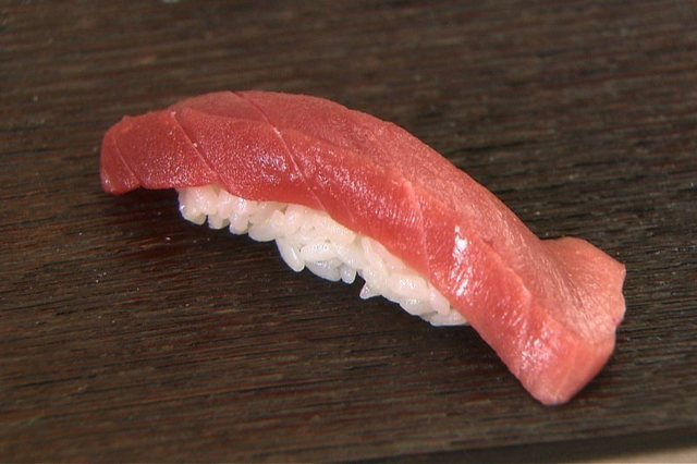 夏のマグロで脂は薄いですがコクと、旨味を引き出した技。