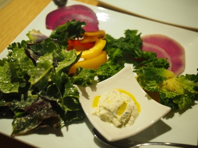 野菜たちは味が濃いので、濃い味付けは不要ですね。爽やかなセルヴェルドカニュがサッパリとしていて◎。菜の花などもあって春のはじめを感じました。