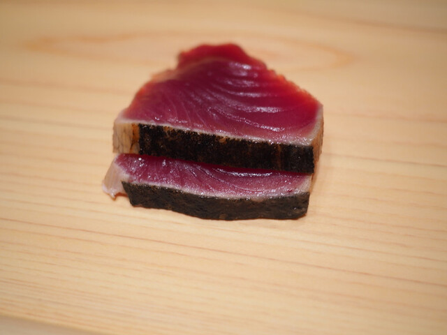 これは意外なアクセント。赤身の鰹→白身の真名鰹の流れも面白い。