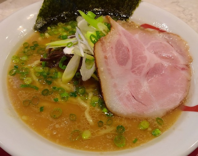 上越妙高を代表するお店。妙高市のオーモリ直系の上越豚骨で、オーモリよりも旨い。オーモリの荒々しさを残しつつ、より巧みな味の組み立てになっています。スープは自然の背脂が混入しています。麺はもちろんオーモリの太麺。 チャーシューは、ワインの爽やかな風味です。